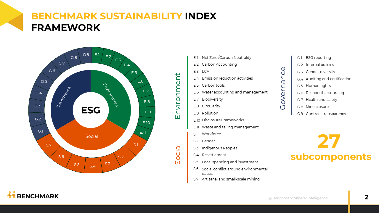 Explore how ESG reporting is shaping the landscape of battery supply chains and the broader EV industry. Charlotte unveils the crucial metrics defining environmental, social, and governance impacts within this dynamic sector (see graphic below for the Benchmark Sustainability Index Framework). Discover how Benchmark's data-driven approach assesses companies across numerous metrics, shedding light on their net-zero plans, gender balance initiatives, and the important role of in-house ESG teams. Join us as we explore why stakeholders - from upstream miners and converters to downstream battery manufacturers and EV companies - are increasingly invested in ESG reporting and responsible sourcing practices.